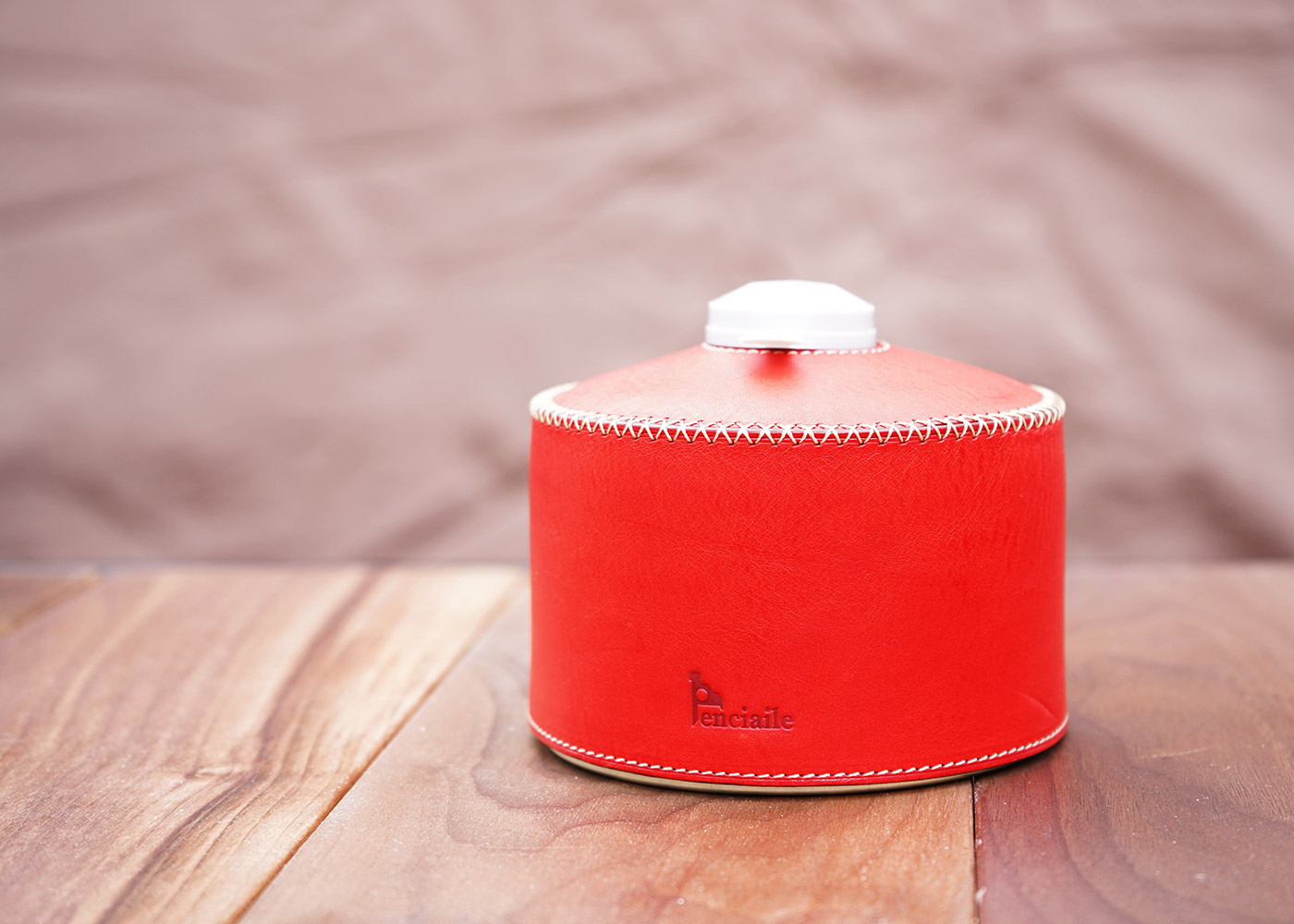 サイズにピッタリと合わせた本革OD缶カバー。 手仕事の丁寧さと裏張りによって高級感があふれ出る質感とデザインに。 キャンプにおけるガスライフを彩る逸品。