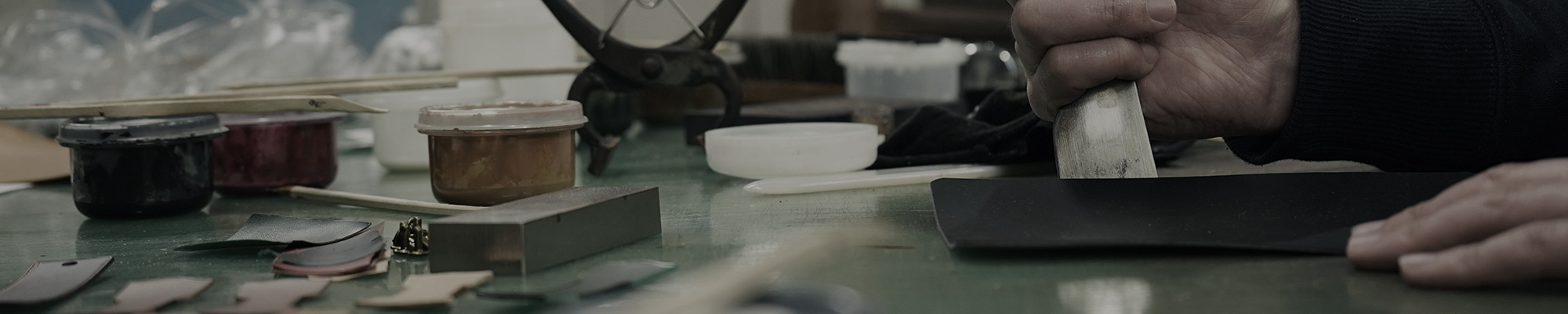 製品はすべて1枚革ではなく裏張りをしており、強度や高級感、質感を高めています。金具は真鍮製で糸の太さも製品によって変えています。